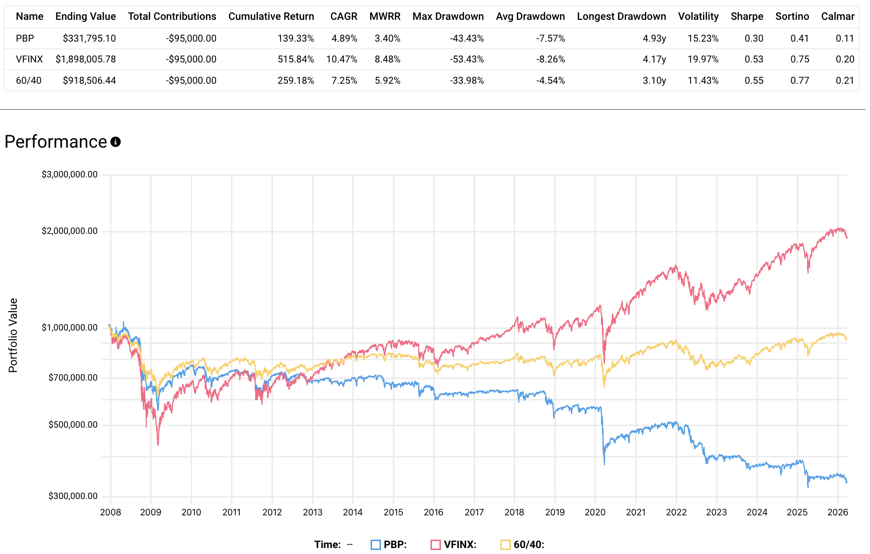 Moreover, also pause and appreciate that PBP has a stated distribution yield of 11%, yet its historical total return was only 5% annualized. Simply put, yield is not return.